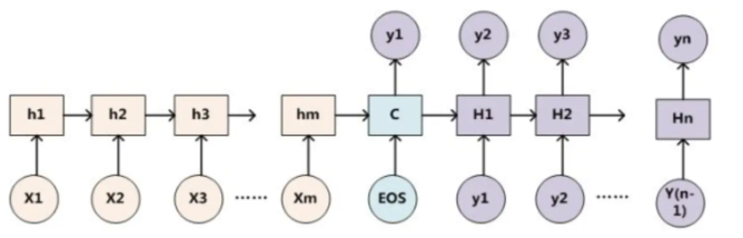 - seq2seq模型架构包括三部分,分别是encoder(编码器)、decoder(解码器)、中间语义张量c。