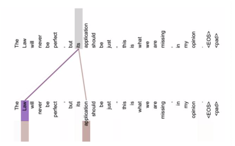 从上图中可以看到, self Attention可以远距离的捕捉到语义层面的特征(its的指代对象是Law).